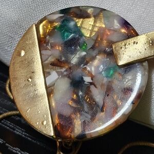 Versona Gold Tone Multicolor Statement Round Pendant Necklace Adjustable 17 inch
