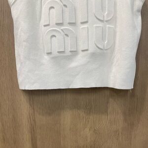 Elegant cream tank with embossed logo. Ideal for stylish layering.