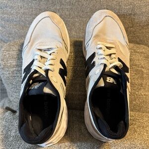 Elevate your look with New Balance sneakers. Cream and black design. Perfect blend of style and comfort.