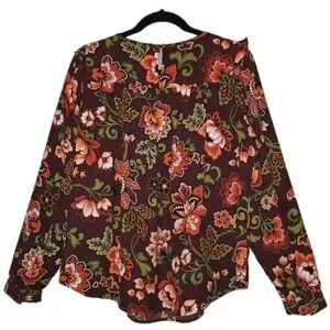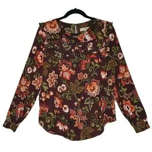 LOFT Floral Print Ruffle Blouse Womens Small Top Long Sleeve Round Neck Boho