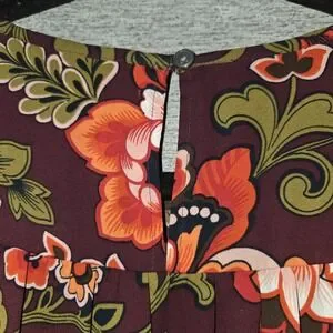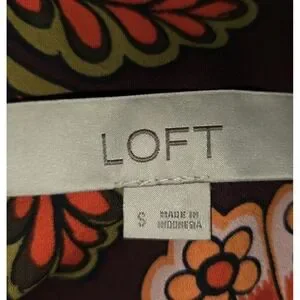 This Loft Floral Print Ruffle Blouse is a stylish and versatile top for women in size small. Featuring a beautiful floral pattern, long sleeves, and a round neckline, this blouse is perfect for various occasions such as casual outings, business meetings, or even a party. The ruffle accents and button closure add a touch of femininity, while the lightweight knit fabric ensures comfort in all seasons. With a bohemian theme in mind, this colorful blouse by Ann Taylor Loft is a must-have piece for any woman's wardrobe.