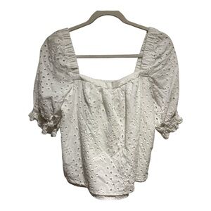 1.STATE White Eyelet Puff Sleeve Square Neck Cottagecore Blouse Size M