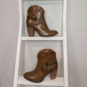 🖤 Roper Tan Heeled Western Boots with Buckle Detail