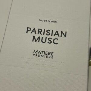 Matiere premiere PARISIAN MUSC EDP 50ml / 1.7 fl oz excellent w box. Only sprayed once. See photo for fill line. I’m decluttering my collection so it needs a new home