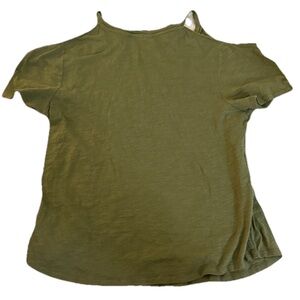 Anthropologie Maeve Women’s 100% Cotton Olive Cold Shoulder Tee Size Large