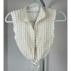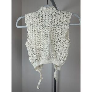 Vintage Knit Hand Knitted Crochet Tie Up Vest One Size Beige Ivory XS/S