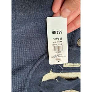 LL Bean Sherpa Lined Waffle Knit Henley Shirt Mens M Tall Mariner Blue