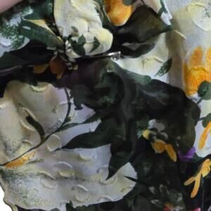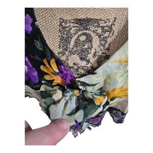 A cascade of vibrant blooms defines this vintage maxi dress, instantly transporting you to a sun-drenched garden party. The delicate floral print features a captivating mix of purples, yellows, pinks, and whites against a rich black backdrop. Cascading ruffles add a playful, feminine touch, enhancing its dreamy silhouette. Perfect for a romantic date, a special occasion, or adding a touch of whimsy to a summer evening.