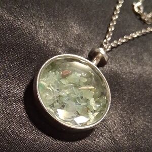 Enhance your style with this chic silver necklace featuring a stunning green gemstone. Perfect for any occasion.