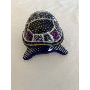 Vintage Turtle Folk Art Hand Painted Pottery Trinket Figurine