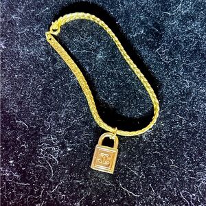 Upcycled Gold CC Padlock on a vintage gold tone Bracelet