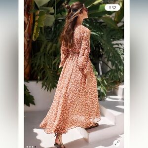 Step out in style with this floral cutout dress. Featuring a beautiful brown pattern, it's perfect for any occasion. The flowing design and unique cutout add a touch of sophistication.