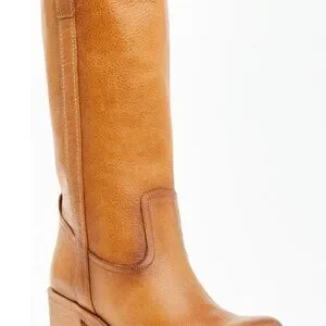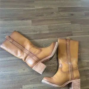 Step out in style with these chic tan heeled boots, perfect for any occasion.