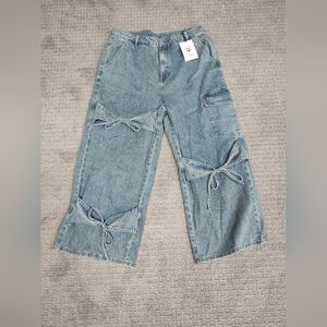 NWT! Women's CIDER Baggy Jeans Wide Straight Leg Bow Jeans - Size 0XL