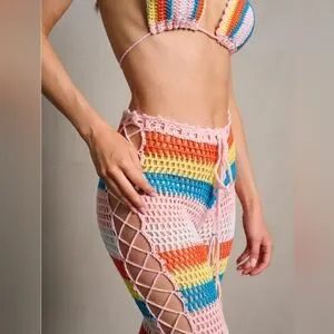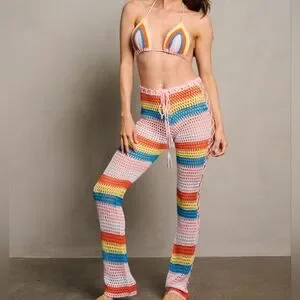 Feel the rays and get groovy with the Afternoon Delight Crochet Top & Bottoms from Hot & Delicious. These totally cute festival set feature an unlined super comfy knitted yarn with a drawstring waist pants and fully lined bikini top. Throw on these cute bottoms and spread the love.