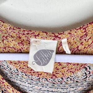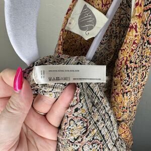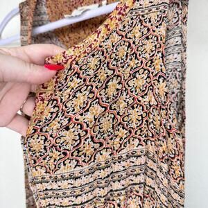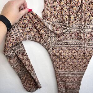 Lilka Anthropologie Yellow Orange Red Mandala Floral Print One Piece Split V-Neck Straight Leg Roll Cuff Playsuit Jumpsuit or Swim Coverup
