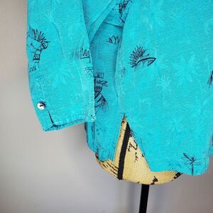 Chico's Silk Linen Blend Novelty Print Button Down Size 2 (Size L)