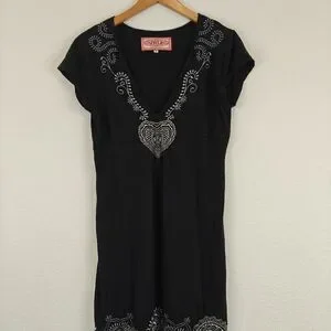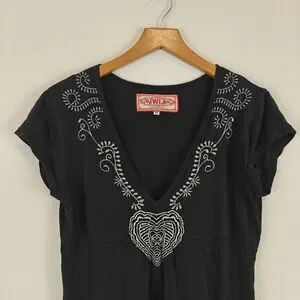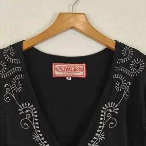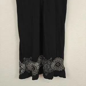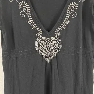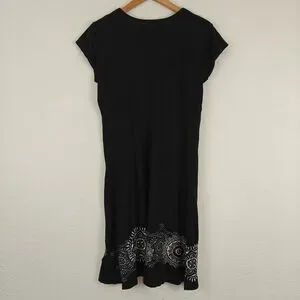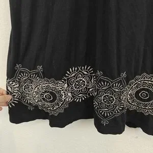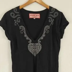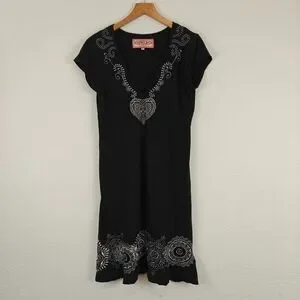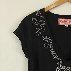 Johnny Was JWLA Floral Embroidered T-shirt Dress in Black Y2K Size Medium