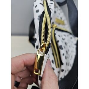 The backpack has a variety of character prints including preppy, puppy, giraffe, Angel, snow leopard, Barbie, cow, dalmation, dog, and Cheetah. The Jessica Camille model from the black white gold product line is a must-have for any fashion-forward woman who loves to make a statement with her accessories.