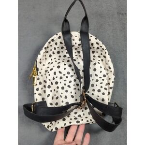 This Jessica Simpson Camille backpack purse is a preppy and stylish addition to any wardrobe. The snow leopard animal print and gold hardware give it a touch of glamour while the black faux leather handle and strap provide a classic look. The medium size is perfect for carrying all your essentials and the cream exterior color with cream lining makes it a versatile piece that can be paired with any outfit.