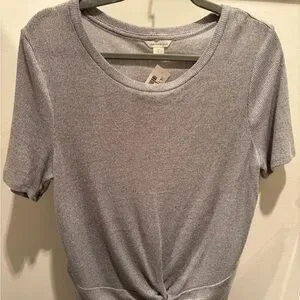 Stylish heather gray top with a knot-front design. Perfect for casual outings. Light weight ribbed material. NEW w tags