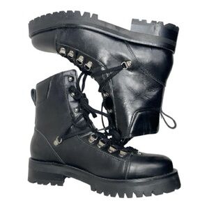 All Saints Black Leather Franka Lug Sole Combat Boots Sz 10/40
