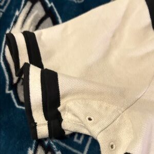 Stylish polo with bold black and white stripes. Features iconic logo and embroidery.
