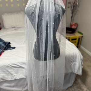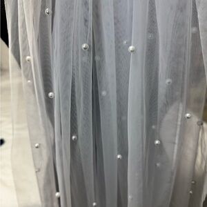 Style: Fingertip/waltz veil with pearl beads and metal comb