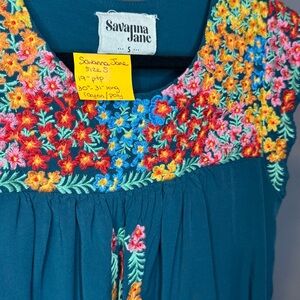 Savanna Jane Teal Tunic with Colorful Floral Embroidery