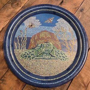 Turtle Handpainted Vtg Metal Plate/tray Upcycled Dot Art