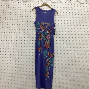 Ed Hardy Sleeves Skull, Butterfly Dress, Size Medium,Color Blue Multi Color NWT