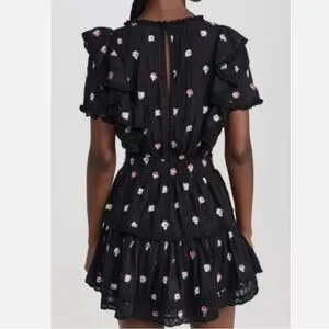 LoveShackFancy Black Dress with Pink Floral Accents