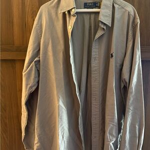 Stylish gray button down. Classic Ralph Lauren design. Perfect for casual wear.