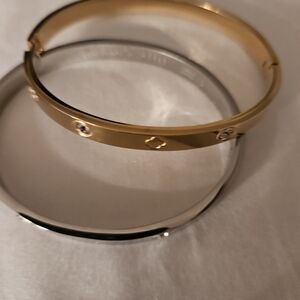 Elegant Stainless Steel bangle bracelets featuring in stunning gold and silver . Perfect for adding a touch of sophistication to any outfit. choose 1 🌹(4 avaliable 2 gold and 2 silver