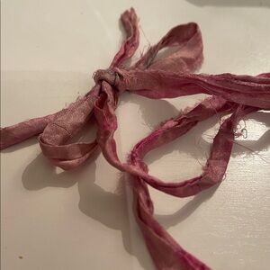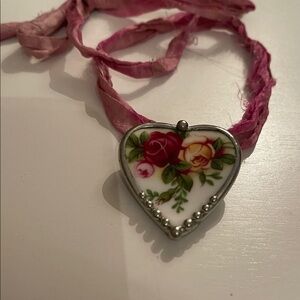 Floral Heart China Pendant Necklace with Pink Sari Ribbon