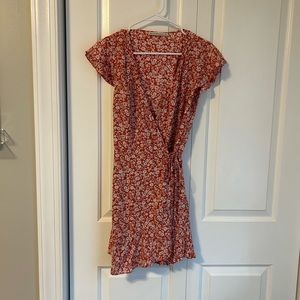 Abercrombie & Fitch Floral Wrap Dress in Orange and White