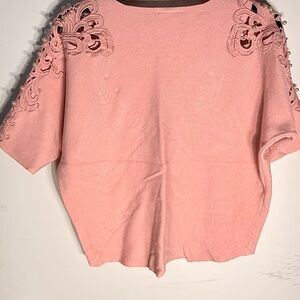 Discover elegance with this beautiful women's blouse featuring intricate lace accents. The peach color brings a soft, stylish flair to your ensemble.