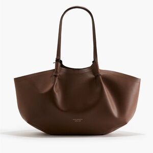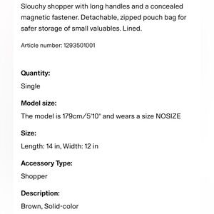 H&M brown large tote shoulder bag faux leather shopper bag with mini pouch