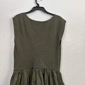 Universal Standard Sleeveless Chloe Combo Midi Dress in olive green. Company Size S, US size 14-16