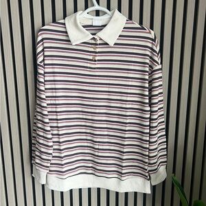 Trendy Queen Women's Oversized Striped Polo Sweatshirt
