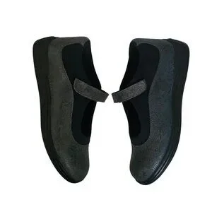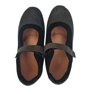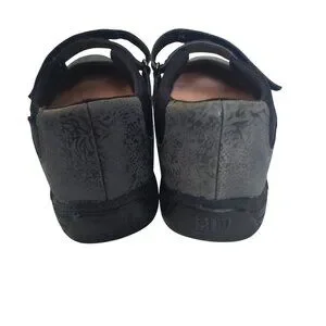 Drew Rose Black Metallic Foil Leather Hook & Loop Mary Jane Shoes Women's Size 9W