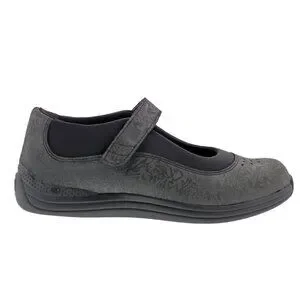 Drew Rose Black Metallic Foil Leather Hook & Loop Mary Jane Shoes Size 9W