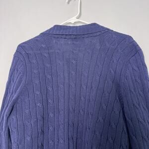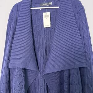 NWT LRL Linen Cotton Cable Knit Cardigan Open Front Plus Sz 1X Navy Blue