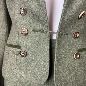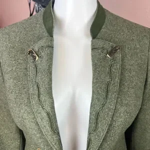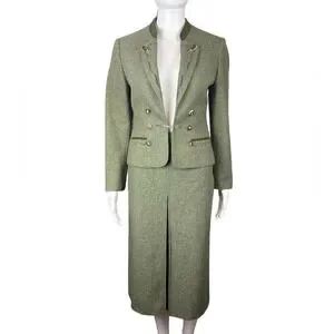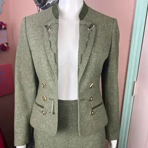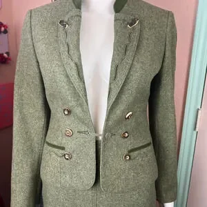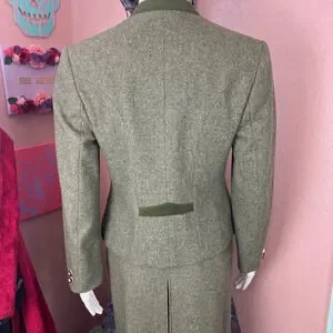 Vintage Lodenfrey Green German Austria Wool Cropped Military Jacket & Skirt Suit