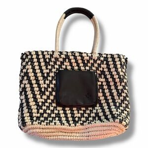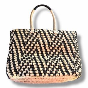Patricia Nash Black/Natural Luciella Large Top Handle Bag Tote Vacation One Size
