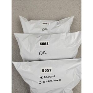 Additional details: Woven Outerknown neck label and original branded hangtag attached; paper tag is made from 100% post-consumer waste and is recyclable. Some photos show a measuring ruler and multiple bagged shirts for inventory and packaging reference only; purchase includes one womens shirt in the size stated.