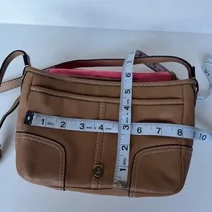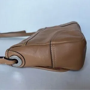 The COACH F29763 Hadley Leather Field Crossbody Bag in Brown Tan Camel is a stylish and versatile shoulder bag designed for casual occasions. Made of high-quality leather with a matte finish, this bag features a solid exterior color in tan camel with silver hardware accents.