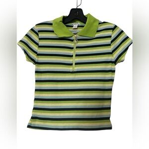 Vibrant striped polo with a zip collar cropped tops.Perfect for casual wear.