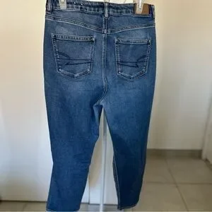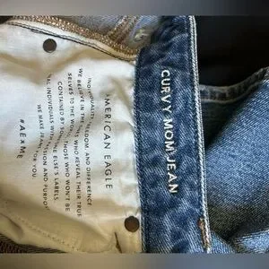 American Eagle Outfitters Women's Blue Distressed Curve Mom Jeans
