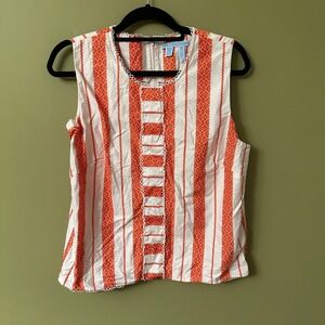 Draper James Orange White Stripe Embroidered Sleeveless Top Size 14